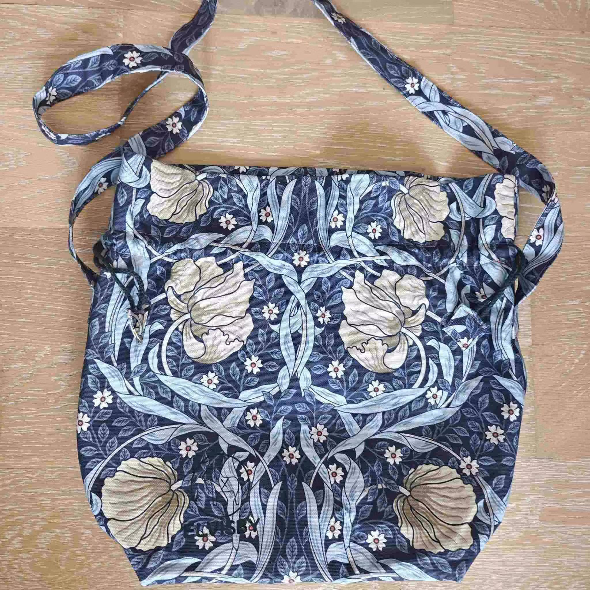En tygväska som fungerar utmärkt att ha som en projektväska för dina stick- eller virkprojekt eller bara slänga över axeln med det dina saker som ska med när du ska ha med dig ut!